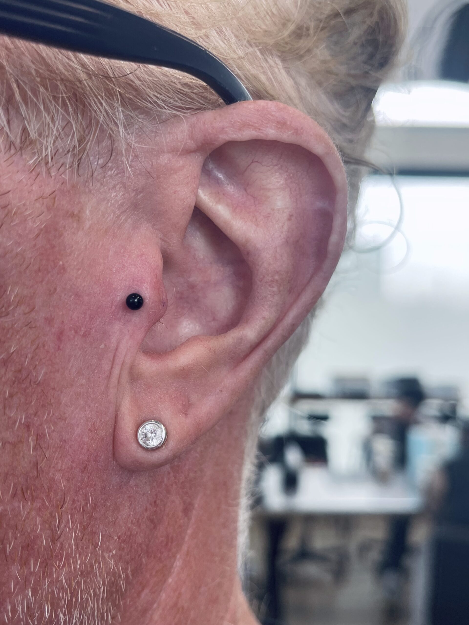 Discover our tragus piercing expertise featuring delicate studs and premium jewellery designed for this unique ear cartilage location. Our gallery showcases the subtle elegance of tragus piercings, highlighting our precise placement technique and selection of appropriately sized jewellery for optimal comfort and healing.